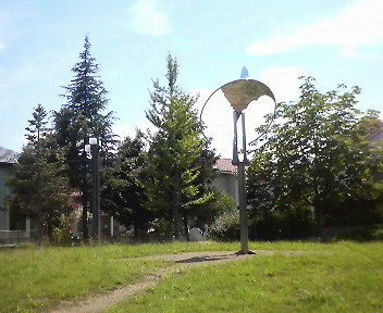 まず駅のすぐ前に、 山の上に続いていく、でっかい筒状のエレベーターがある。